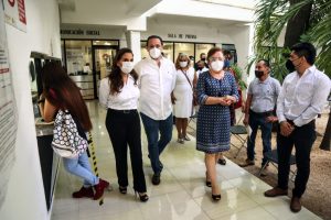 La Presidente Municipal Mara Lezama realizó un recorrido por varias oficinas del Palacio Municipal para supervisar el cumplimiento de las recomendaciones sanitarias y al saludar a los ciudadanos recordó que están disponibles varios trámites en línea para comodidad desde su hogar o negocio, ya que se puede consultar estados de cuenta y descuentos vigentes así como hacer pagos con candados de seguridad para transacciones en línea para agilizar los procedimientos y evitar posibles contagios.
