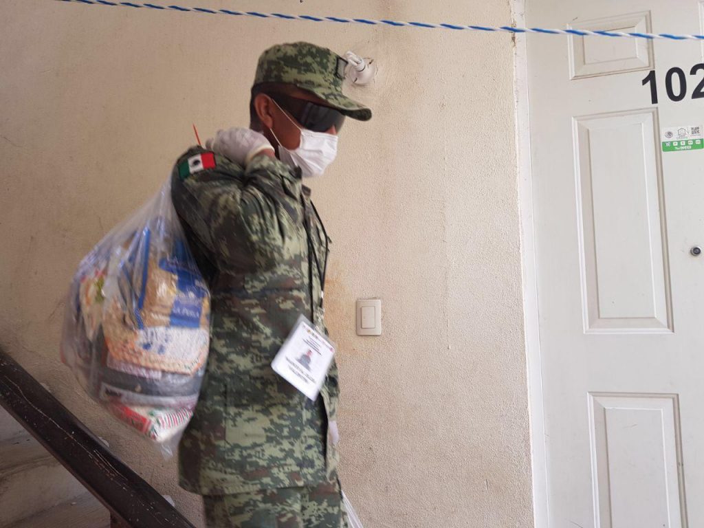 En el caso de edificios, se solicitó a un integrante de cada familia dirigirse a la planta baja de mayor espacio para recibir su despensa, manteniendo distancia de metro y medio entre cada persona, ya que muchos de los pasillos de los inmuebles no contaban con las dimensiones para entregar la ayuda de forma responsable.