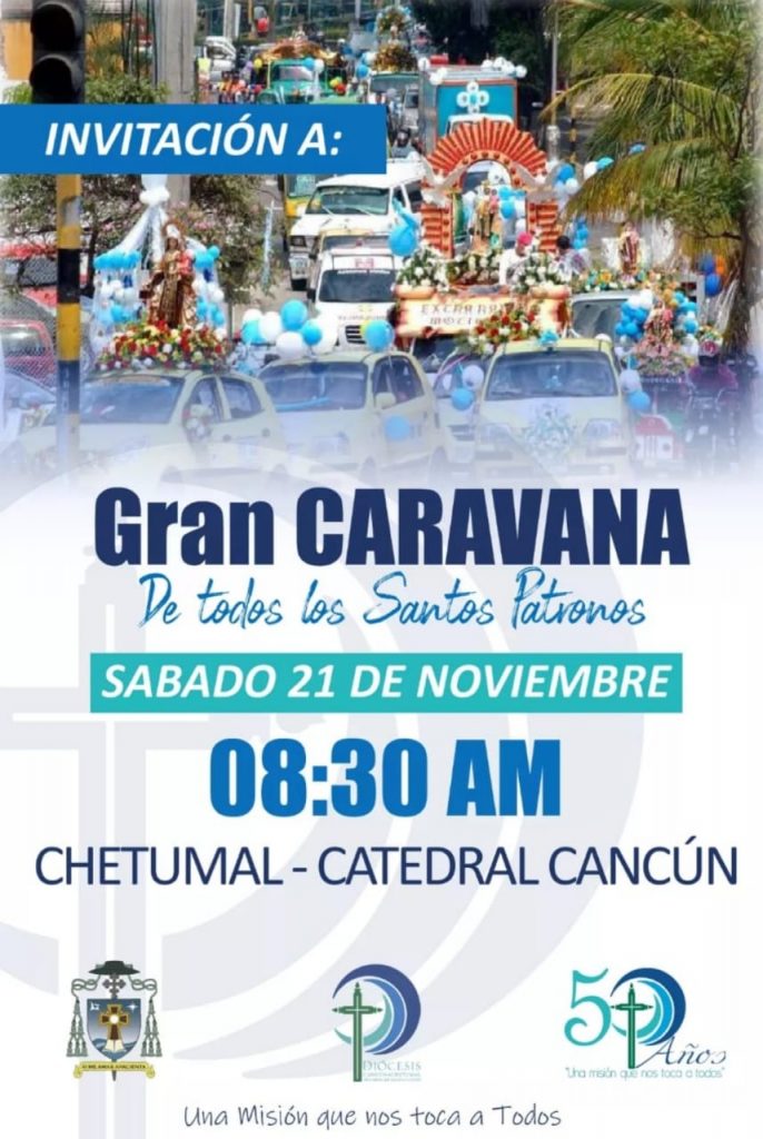 Chetumal, Q. Roo, jueves 12 de noviembre de 2020, poderycrítica.- En el Marco jubilar de acción de gracias por los 50 años de evangelización, la elevación canónica de Prelatura a Diócesis y la confirmación episcopal de Monseñor Pedro Pablo Elizondo Cárdenas como primer obispo Diocesano, el 21 de noviembre de 2020 se tendrá una mega caravana de todos los Santos Patronos de las 74 parroquias en nuestra Iglesia.