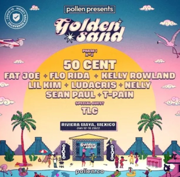 Riviera Maya, Q. Roo, jueves 09 de septiembre de 2021, poderycrítica.- La Riviera Maya se vestirá de gala con su segundo evento con mayor cúmulo de gente confirmado tras la pandemia pues Golden Sand tendrá la participación de 50 Cent, una leyenda de la música Rap de inicios del 2000; esta será la mejor carta del festival seguido de Kelly Rowland, la popular vocalista y ex compañera de Beyoncé en Destiny’s Child y pareja de David Guetta, además del rapero Nelly, el jamaiquino Sean Paul, T-Pain, el conocido Flo Rida, Fat Joe, la rapera Lil Kim y el también actor Ludacris, todos compartiendo uno de los más nuevos escenarios nunca antes anunciados.