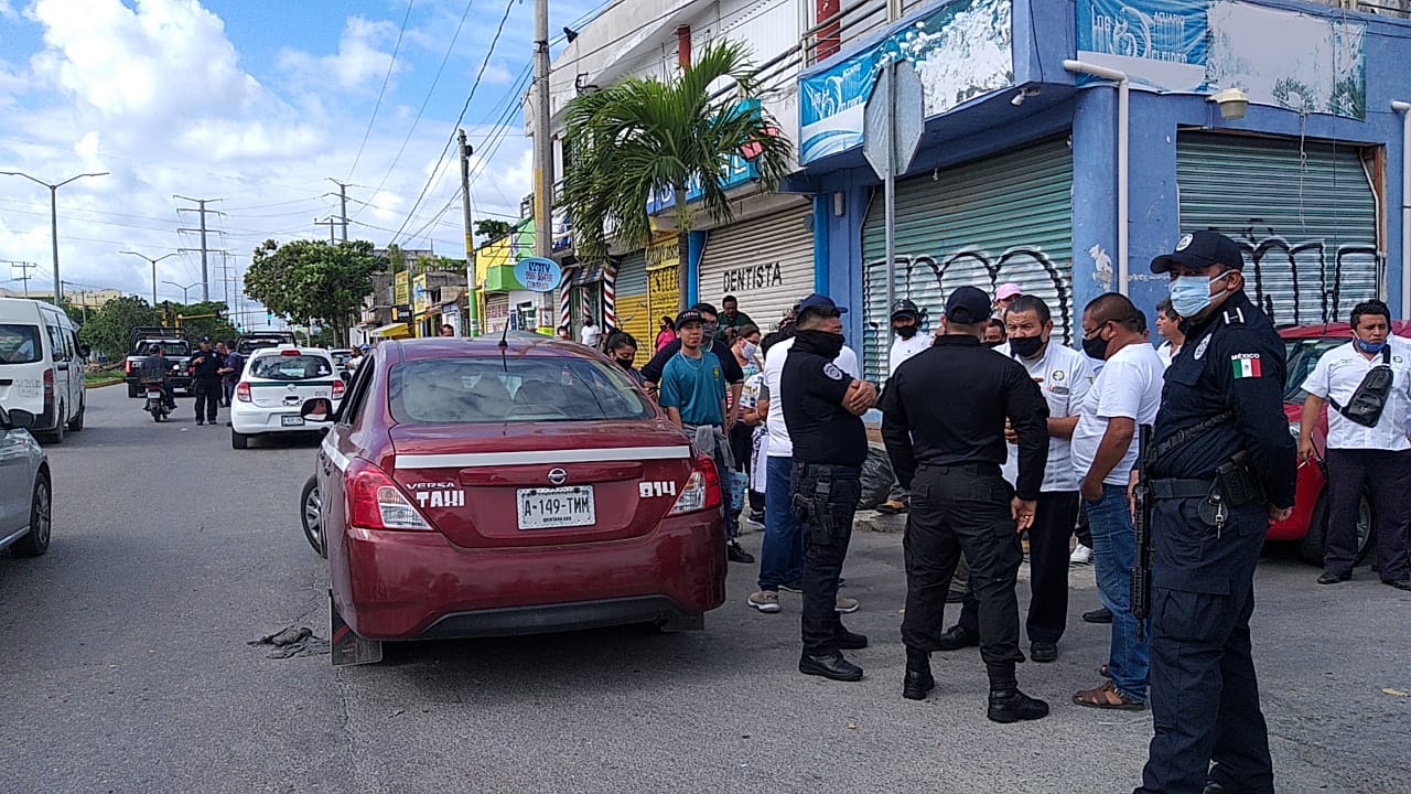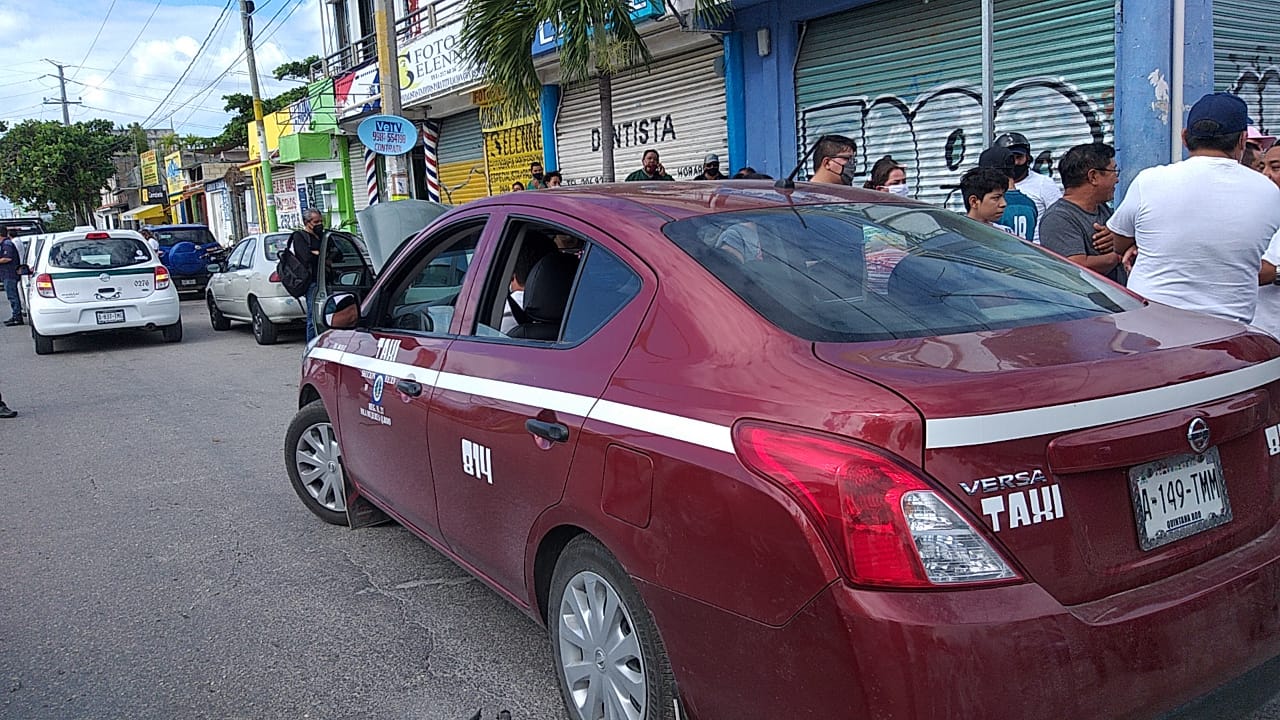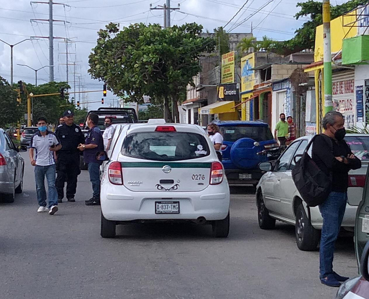 En ese momento, se le emparejó el taxi 0276 del sindicato Andrés Quintana Roo para reclamarle que no puede levantar pasaje en Cancún.