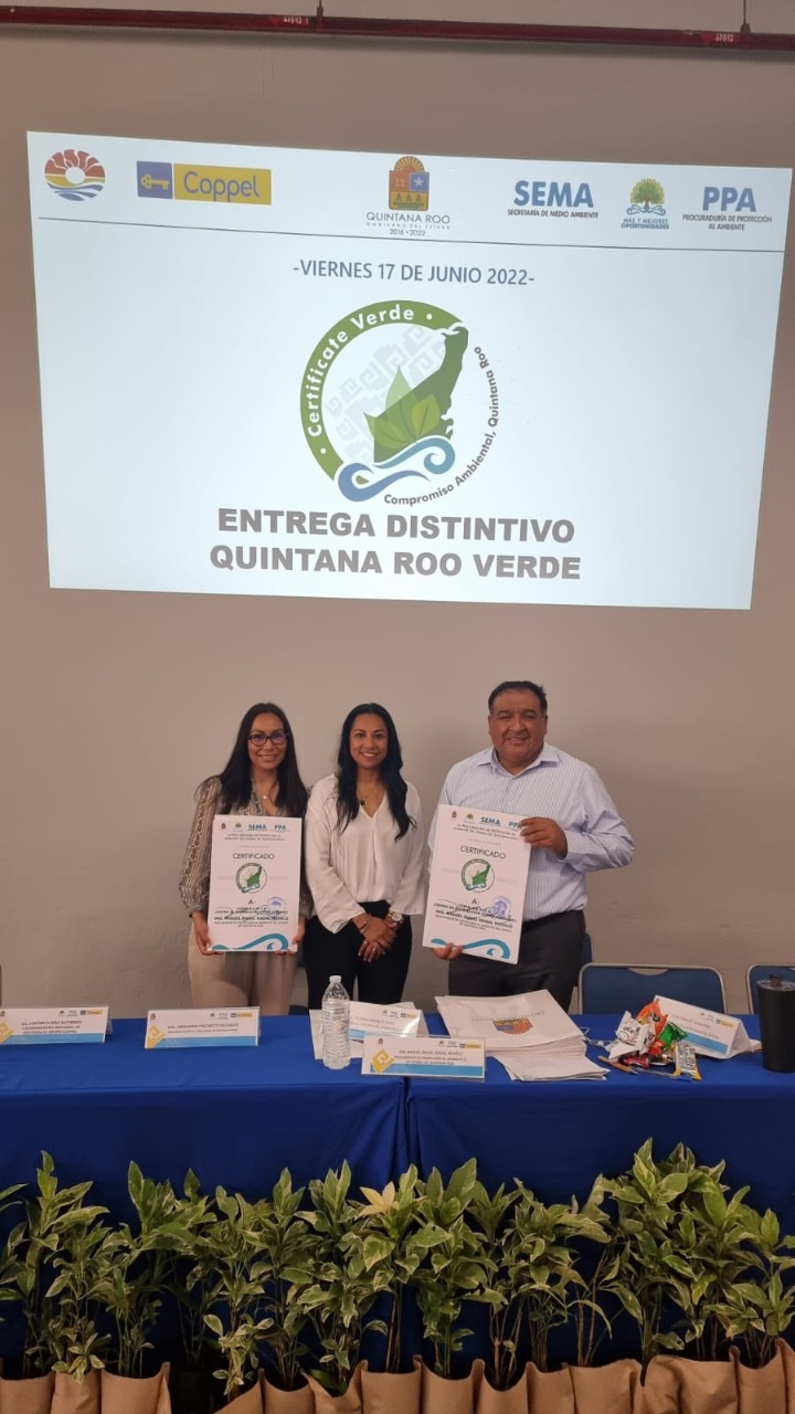 El distintivo “Quintana Roo Verde” es el reconocimiento a la mayor exigencia del desempeño ambiental, al obtenerlo queda constatado que la empresa se compromete a mantener y garantizar la protección al medio ambiente en cada uno de sus establecimientos.