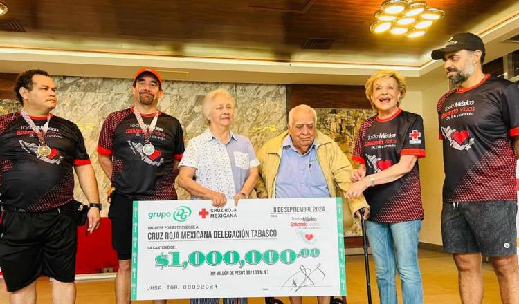 PODER Y CRÍTICA | REDACCIÓN | La delegación de la Cruz Roja en Tabasco recibió un generoso donativo de un millón de pesos por parte del corporativo Grupo DG, dirigido por el empresario tabasqueño David Gustavo Gutiérrez Ruiz. La entrega simbólica del cheque tuvo lugar en las instalaciones del club deportivo Haciendas Family & Fitness Club, durante la quinta edición de la carrera atlética «Todo México Salvando Vidas», organizada por la benemérita institución.
