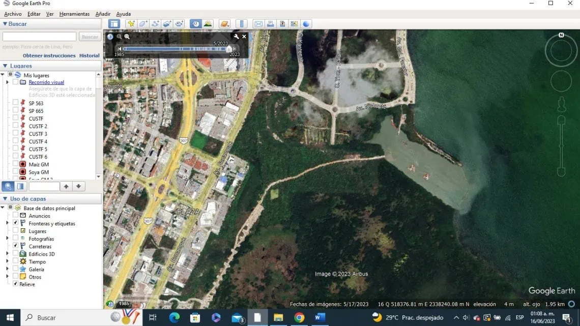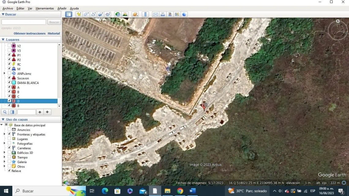 Imagen obtenida del servidor Google Earth de fecha 17 de mayo de 2023,Es evidente que no se están cumpliendo con las mitigaciones propuestas tanto por el promovente como por la autoridad, es el caso que podemos corroborar en la página 112 de la Manifestación de Impacto Ambiental, donde se habla de un sistema denominado “ Top Down,, en el que se supone el daño iba a ser puntual, y no ha sido asi, como se ve en las fotos talaron, y rellenaron toda la franja de manglar incrementando su tamaño.
