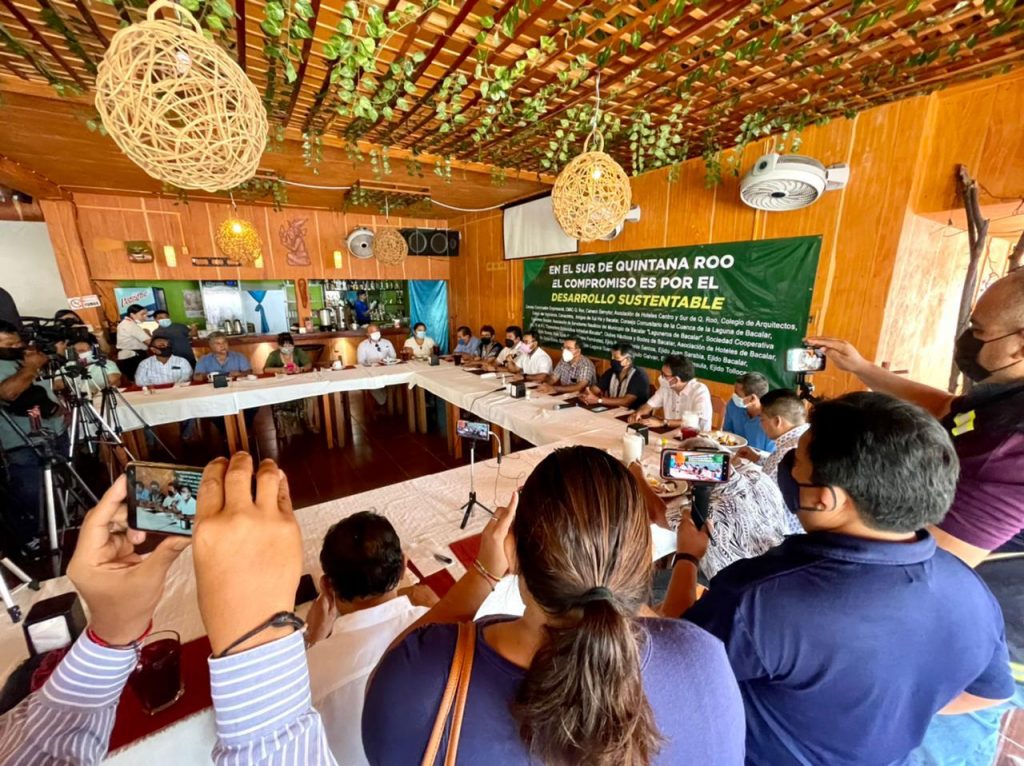 Con la presencia de los dirigentes y representantes de la Asociación de Hoteles del Centro y Sur de Quintana Roo, de la Canaco Chetumal-Tulum, CMIC Quintana Roo, Coparmex Bacalar, Náuticos de Bacalar, Asociación de Hoteles de Bacalar, así como comisariados de los ejidos de Bacalar, Buenavista, Aarón Merino Fernández, Pedro Antonio Santos, Juan Sarabia, Santa Elena, Calderitas, Laguna Guerrero, Úrsulo Galván, La Península y Tollocan, el posicionamiento de los asistentes fue a favor de un desarrollo sustentable y el rechazo, nuevamente, como hace cuatro años, a cualquier figura de Área Natural Protegida, en cualquiera de sus modalidades dentro de la cuenca de la laguna de Bacalar.