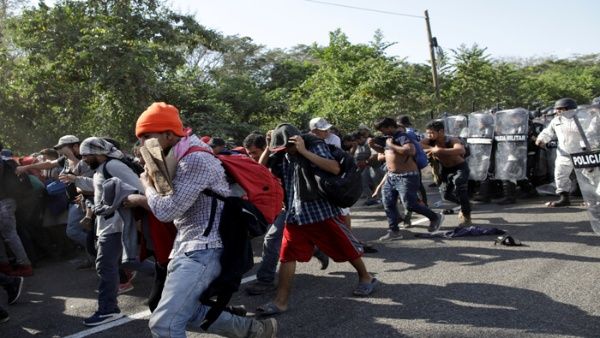 Los migrantes, provenientes en su mayoría de Honduras, lanzaron piedras a los efectivos mientras avanzaba el contingente de la Guardia Nacional, que buscaba impedirles el paso.