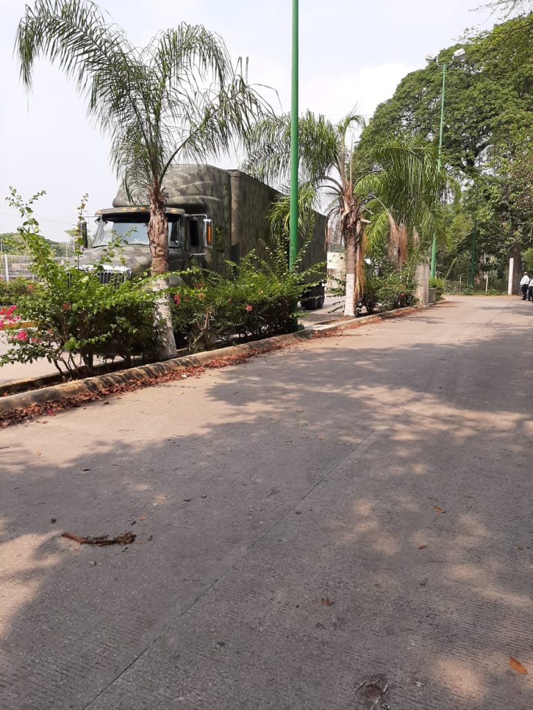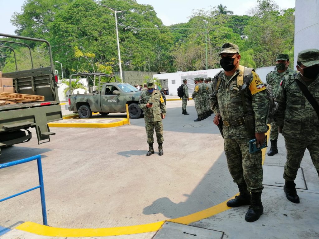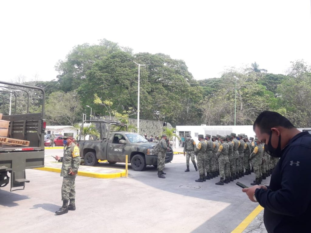 Comalcalco, Tabasco, Miércoles 29 de Abril de 2020, poderycrítica.- Elementos de la Guardia Nacional arribaron esta mañana al hospital regional «Desiderio G. Rosado» de Comalcalco para llevar  insumos de uso hospitalario enviados por la Presidencia de la República para la atención de pacientes con Covid-19.