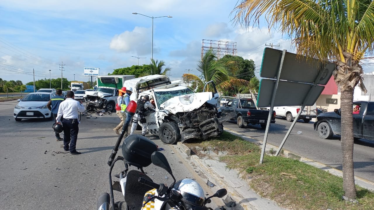 Poder y Crítica | Redacción | Un aparatoso choque se registró la mañana de este martes, en el que un elemento de la Guardia Nacional impactó la patrulla que conducía de frente contra una camioneta de carga sobre el bulevar Luis Donaldo Colosio de Cancún.