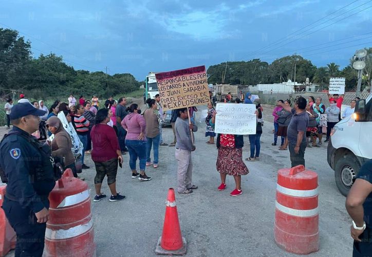 PODER Y CRÍTICA | REDACCIÓN | Un nuevo bloqueo ocurrió en la carretera Chetumal-Escárcega, donde habitantes de la comunidad Juan Sarabia, perteneciente al municipio de Othón P. Blanco, reclaman daños en sus viviendas por las explosiones en zonas de obras del Tren Maya.