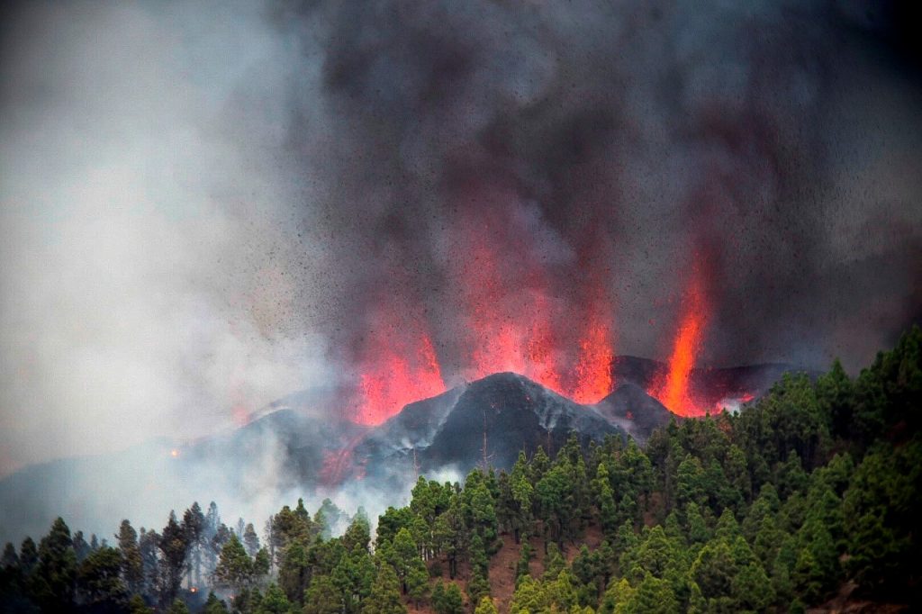 España, lunes 20 de septiembre de 2021, poderycrítica .- La actividad del volcán en la isla de La Palma en España situado en la zona de Cumbre Vieja, uno de los complejos volcánicos más activos del archipiélago de Canarias; después de una semana en la que se acumularon miles de sismos en la zona dejo imágenes impactantes.