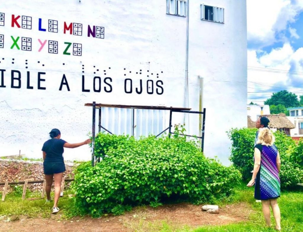 En otra escuela del mismo municipio también pintaron el alfabeto pero en sistema braille, el cual consiste en puntos a relieve para lectura y escritura táctil para personas con disparidad visual.