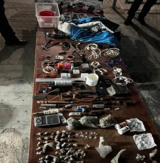 Los internos fueron sacados de sus celdas y llevados a un área común por los agentes, mientras realizaban la revisión de los distintos espacios de esta cárcel, localizando los objetos mencionados, así como cargadores, audífonos y algunas herramientas.