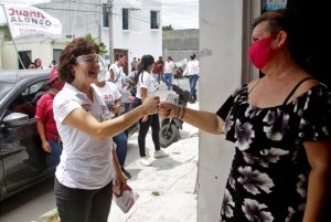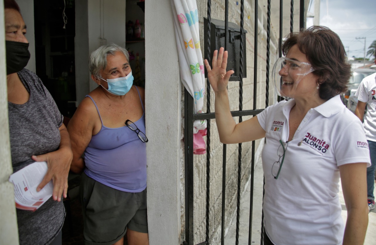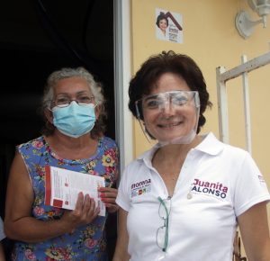 Cozumel, Q. Roo, Miércoles 21 de Abril de 2021, poderycrítica.- “Es momento de hacer el cambio en Cozumel por nuestras familias” destacó la candidata por la coalición “Juntos Hacemos Historia en Quintana Roo”, Juanita Alonso, a los habitantes de la colonia Colonos Cuzamil, quienes gustosos salían de sus hogares para escuchar el proyecto que se implementará una vez que llegue a encabezar el Ayuntamiento.