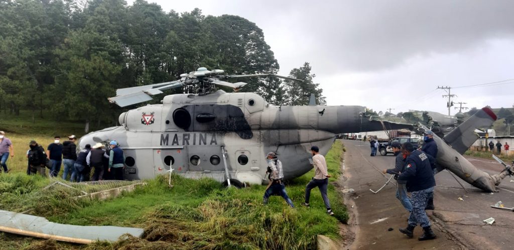 Veracruz, miércoles 25 de agosto de 2021, poderycrítica.- Se reporta el desplome de un helicóptero de la Marina en la unidad Deportiva en el municipio de Agua Blanca.