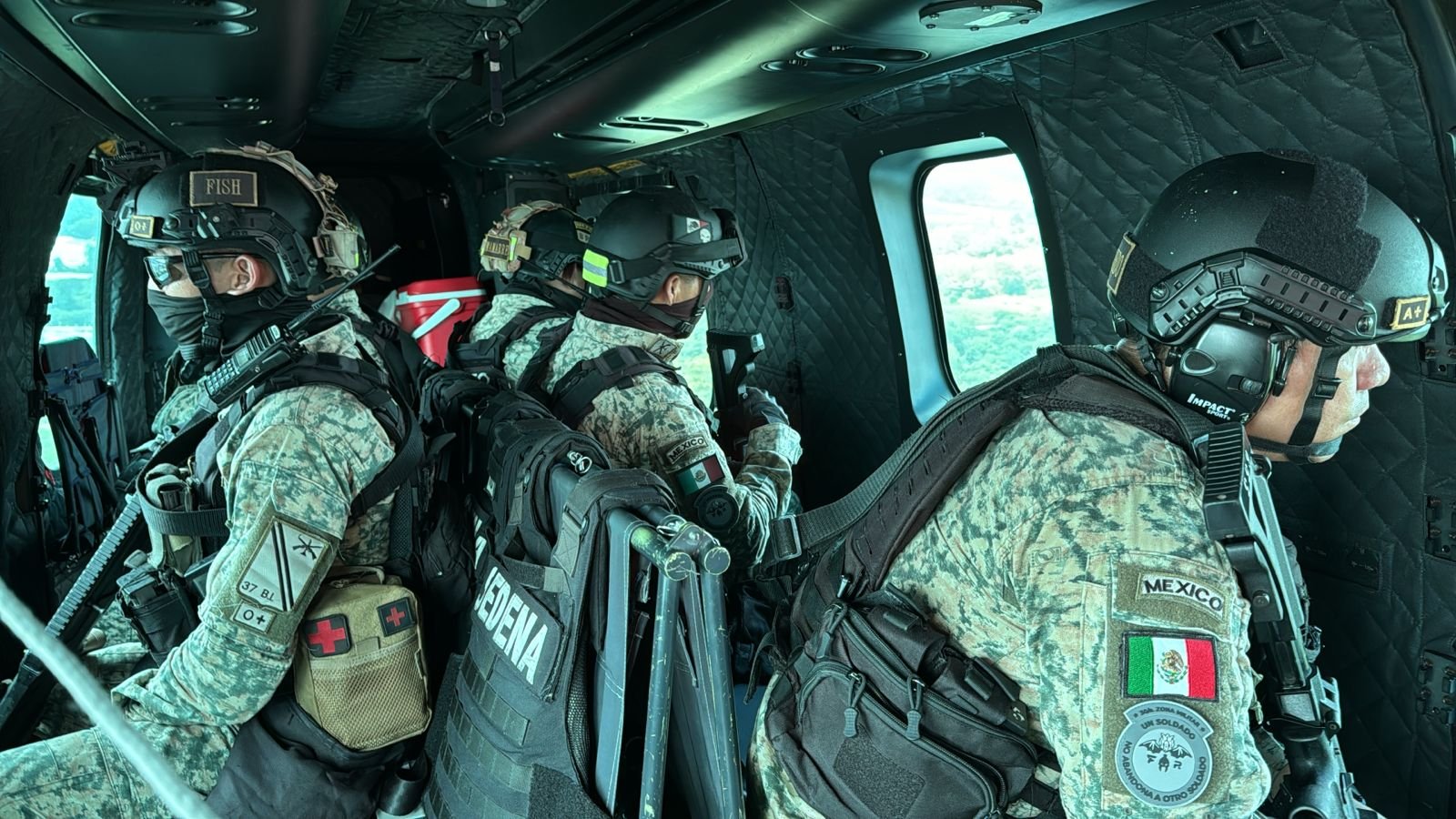 La aeronave utilizada es un helicóptero EC-725 Cougar MKII+, perteneciente a la Fuerza Aérea Mexicana, en el cual participaron miembros del 37 Batallón de Infantería, equipados con artillería pesada.