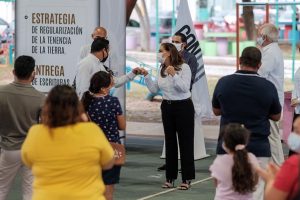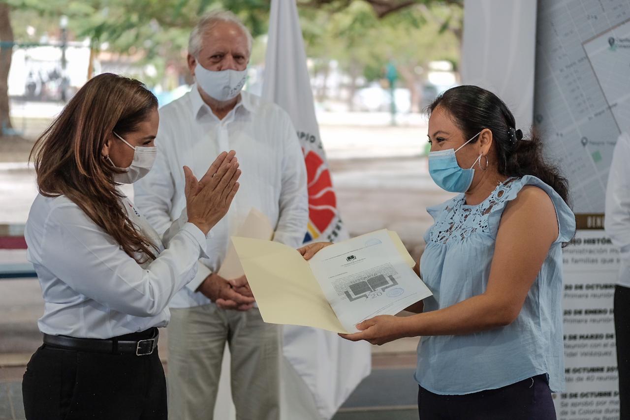 Cancún, Q. Roo, Lunes 04 de Enero de 2021, poderycrítica.- En un hecho histórico, familias de la colonia “Fidel Velázquez” recibieron sus escrituras por parte de la Presidente Municipal Mara Lezama, luego de dos años de trabajo de la administración con los ciudadanos que por 33 años no tenían certeza jurídica de sus viviendas.