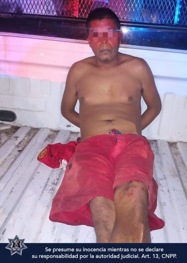 Este sujeto trató de darse a la fuga, pero en su estado, fue rápidamente sometido por vecinos que escucharon el escándalo y se acercaron.