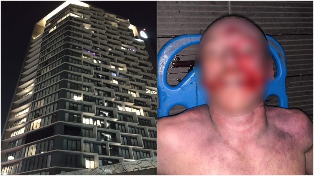 El hombre se encontraba en el balcón cuando se observa como cae desde el piso 25 del edificio de la Torre Adamant.