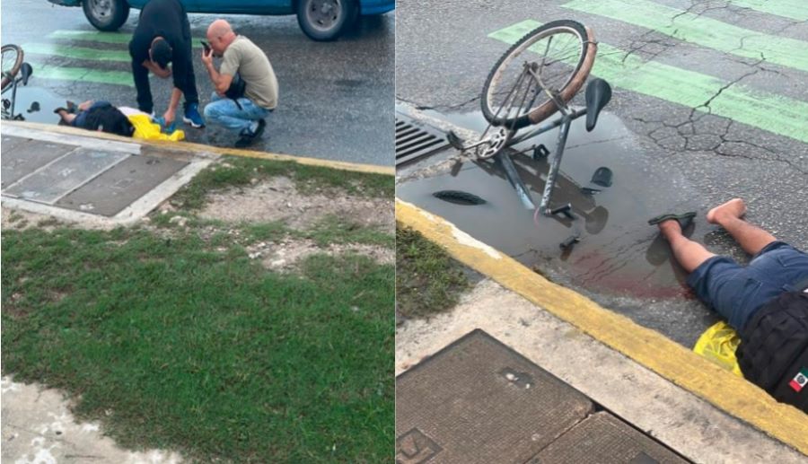 Testigos oculares refirieron que el hombre venía transitando sobre la avenida Chac Mool, cuando de pronto la mitad de su bicicleta terminó incrustada en el bache inundado que tiene un metro de profundidad.