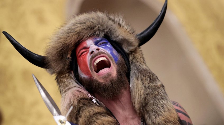 HOMBRE VESTIDO DE BISONTE QUE IRRUMPIÓ EN EL CAPITOLIO PIDE EL PERDÓN DE TRUMP
