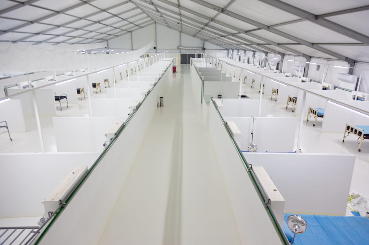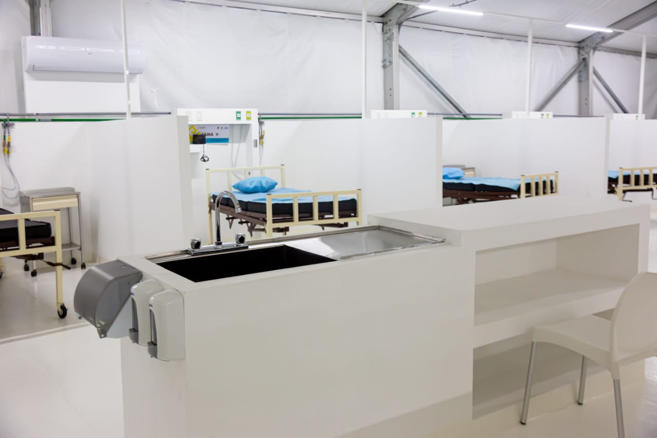 Dichos hospitales Covid fueron construidos con estructuras alemanas encapsuladas, con tanques de oxígeno, camas independientes, áreas de sanitización y áreas de descanso para médicos, así como zonas de ascenso y descenso para ambulancias.