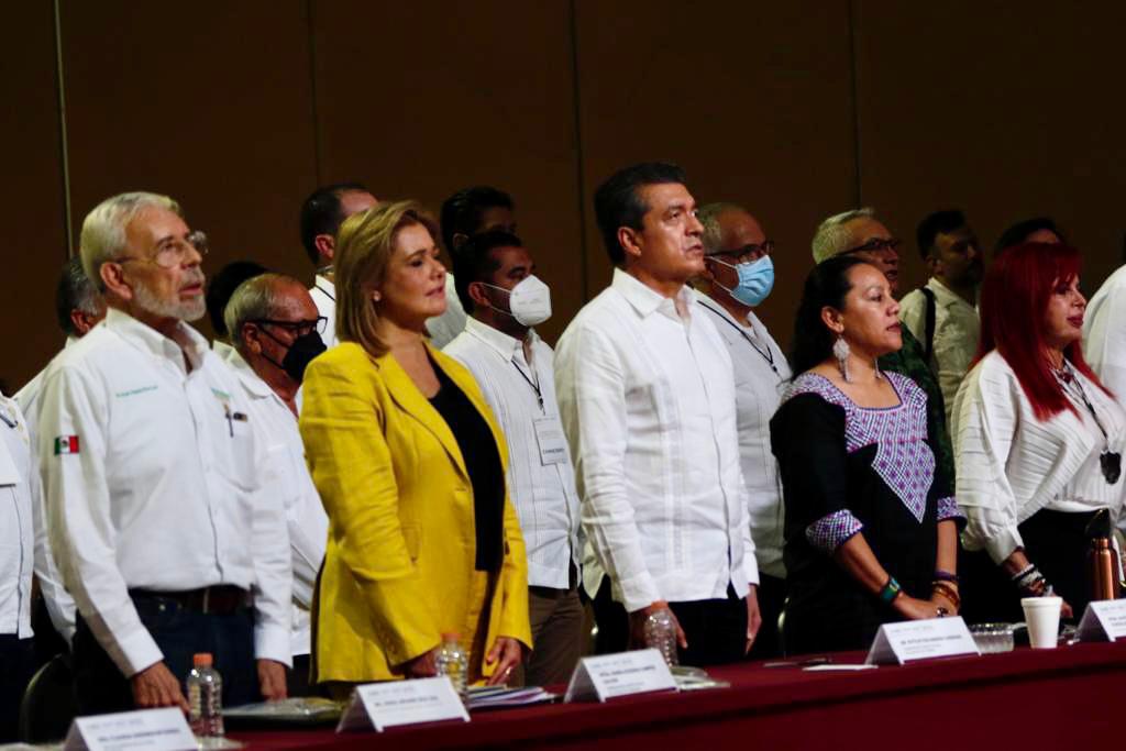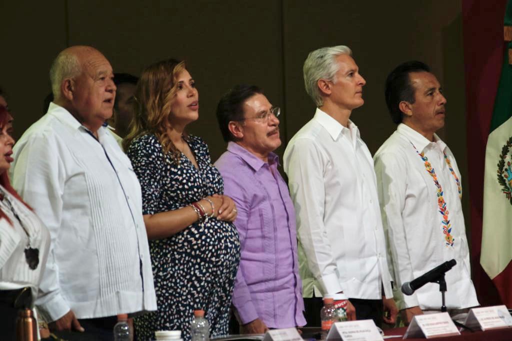 “Agradezco mucho a los gobernadores que llegaron a ocupar sus cargos apoyados por el partido del Movimiento Ciudadano y a quienes llegaron a ocupar sus cargos apoyados por el PAN y a los que llegaron a ocupar el cargo de gobernador por el PRI, les agradezco mucho. Y me falta el Partido Verde. También, por estar aquí, todos.”
