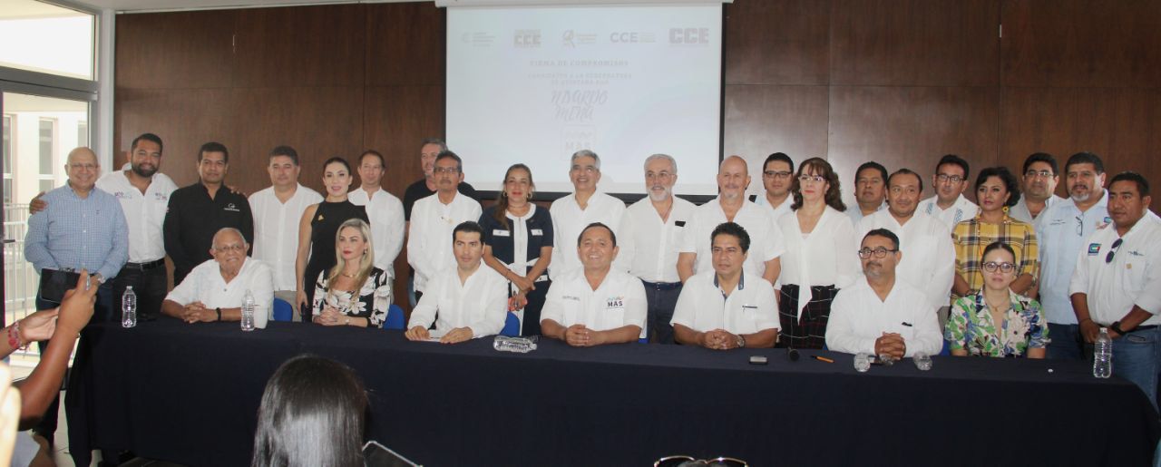 Ante el CCE de la Riviera Maya, el candidato del MAS al gobierno del Estado reveló que la integración del Gabinete está libre, los invitó a ser cogobernadores.