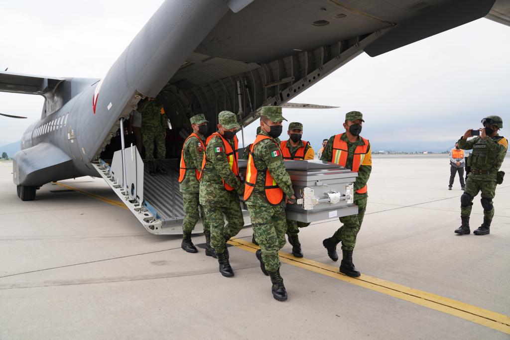 Funcionarios de la Secretaría de Gobernación, a través del Instituto Nacional de Migración (INM), y de las secretarías de Relaciones Exteriores (SRE) y de la Defensa Nacional (Sedena), recibieron los ataúdes de Miriam ‘R’ y Álvaro ‘O’, los cuales están en traslado a La Trinitaria, Chiapas, y Cortazar, Guanajuato, respectivamente, para que sean recibidos por sus familiares.
