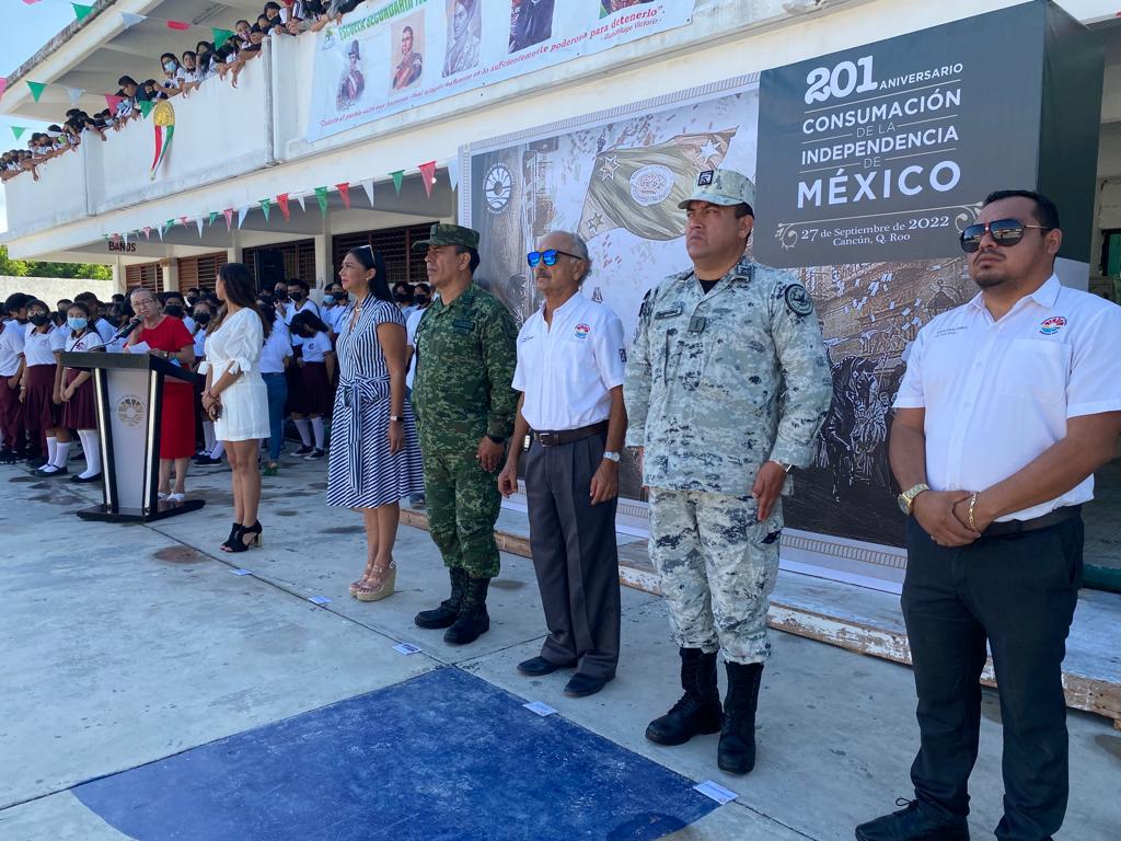 A este evento asistieron: el director de Eventos Cívicos, Edgar Ruíz Novelo; la titular de Educación Básica en Benito Juárez, Marcelina Sagrero Balado; así como el Capitán Pedro Maya Díaz y el Suboficial Leonel Barradas Barradas, en representación de la Guarnición Militar y la Guardia Nacional en Quintana Roo.