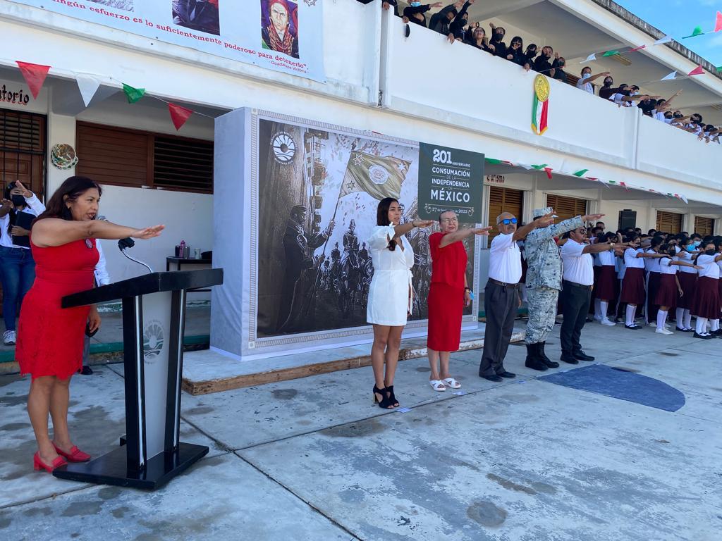 PODER Y CRÍTICA | REDACCIÓN | Ante la bandera de México en lo más alto, en la Escuela Secundaria Técnica No. 32 “Independencia de México”, autoridades municipales, estatales y federales, realizaron una ceremonia cívica conmemorando el 201 Aniversario de la Consumación de la Lucha de Independencia.