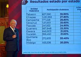 Quintana Roo se ubicó dentro de los 10 estados con mayor participación ciudadana en este ejercicio y sabemos que el presidente nos tiene bien presentes en su corazón. AMOR CON AMOR SE PAGA, QUERIDO PRESIDENTE.