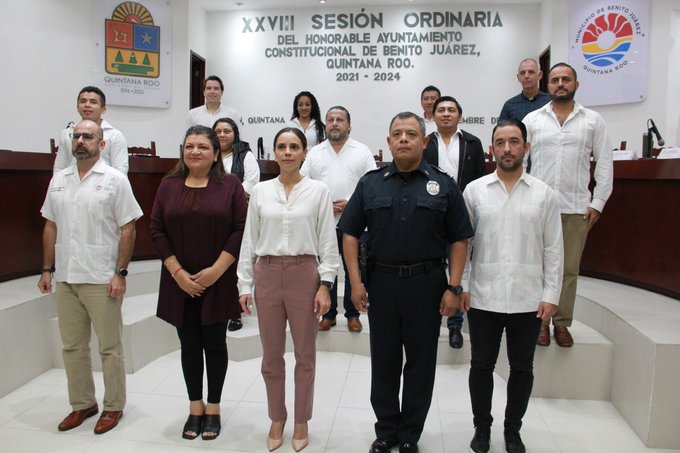 PODER Y CRÍTICA | REDACCIÓN | Durante la Vigésima Octava Sesión Ordinaria, encabezada por la Presidenta Municipal Ana Patricia Peralta, el Cabildo de Benito Juárez ratificó por unanimidad y tomó la protesta de ley a José Pablo Mathey Cruz, como secretario de Seguridad Pública y Tránsito, con la encomienda de trabajar en favor de los cancunenses.