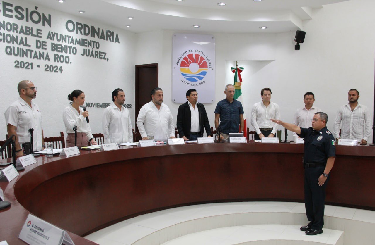PODER Y CRÍTICA | REDACCIÓN | Durante la Vigésima Octava Sesión Ordinaria, encabezada por la Presidenta Municipal Ana Patricia Peralta, el Cabildo de Benito Juárez ratificó por unanimidad y tomó la protesta de ley a José Pablo Mathey Cruz, como secretario de Seguridad Pública y Tránsito, con la encomienda de trabajar en favor de los cancunenses.