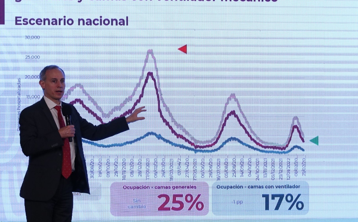 En conferencia, junto al presidente Andrés Manuel López Obrador, el subsecretario de Salud celebró la reducción de la actividad epidémica y recordó que actualmente México está 82% por debajo del punto máximo de la epidemia en cuanto a hospitalización, mientras que en la cuarta ola no superó el 50% de ocupación.