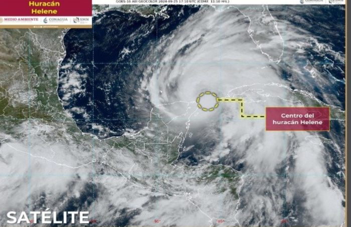 PODER Y CRÍTICA | REDACCIÓN | El huracán Helene se mantiene como categoría 1 en la escala Saffir-Simpson, con su centro localizado a 100 km al nor-noreste de Cancún y a 175 km al nor-noreste de Cozumel, Quintana Roo, según el Servicio Meteorológico Nacional (SMN).