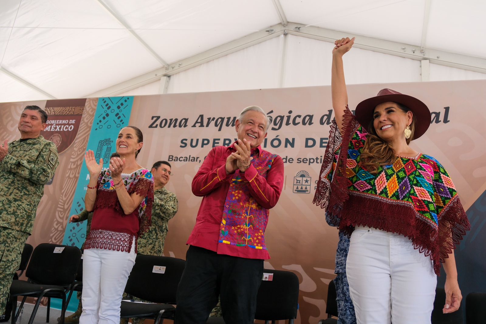 Estos son días históricos para el sur del país, pero en especial para Quintana Roo, expresó la gobernadora Mara Lezama Espinosa ante el presidente Andrés Manuel López Obrador y la presidenta electa Claudia Sheinbaum durante la supervisión de trabajos de esta zona arqueológica que pronto abrirá sus puertas al mundo.
