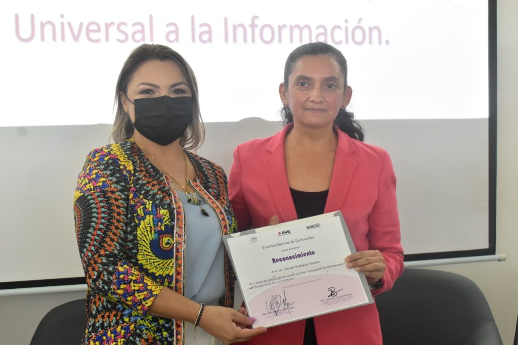 Por su parte, la Vocal Ejecutiva de la Junta Local Ejecutiva del Instituto Nacional Electoral en Quintana Roo, Claudia Rodríguez Sánchez, manifestó que el acceso universal a la información significa que toda persona tiene derecho a buscar, recibir y difundir información.