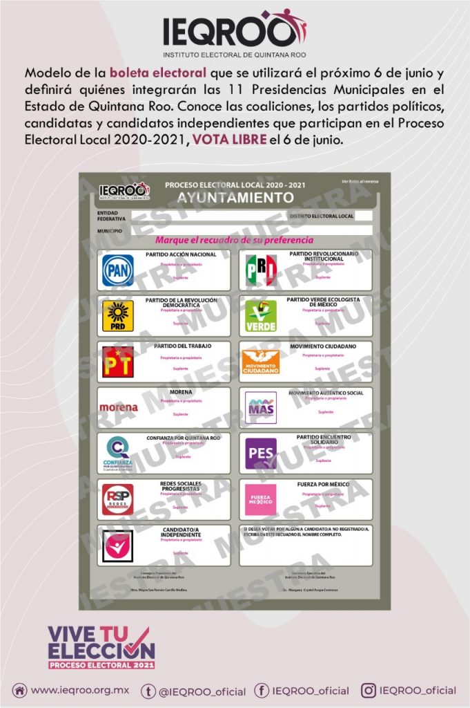 Chetumal, Q. Roo, martes 20 de abril de 2021, poderycrítica. – El Consejo General del Instituto Electoral de Quintana Roo (IEQROO) en sesión extraordinaria, aprobó los diseños definitivos de la documentación electoral con emblemas a utilizarse en el Proceso Electoral Local 2020-2021, así como el procedimiento para la preservación, resguardo y custodia de la documentación y materiales electorales.