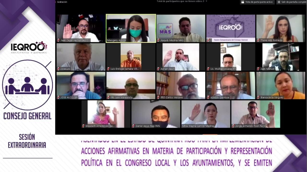 Chetumal, Q. Roo, Martes 13 de Octubre del 2020, poderycrítica.- El Consejo General del Instituto Electoral de Quintana Roo (IEQROO) en Sesión Extraordinaria aprobó el acuerdo del plan de trabajo para el proceso de la consulta, previa, libre e informada a los pueblos y comunidades indígenas asentados en el estado de Quintana Roo para la implementación de acciones afirmativas en materia de participación y representación política en el Congreso Local y los Ayuntamientos, y se emiten consideraciones relacionadas con su ejecución.