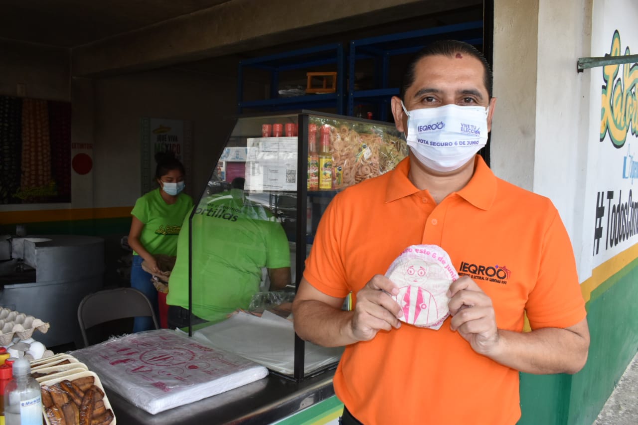 Chetumal, Q. Roo, Martes 25 de Mayo de 2021, poderycrítica.- El Instituto Electoral de Quintana Roo (IEQROO) lanzó la campaña “Voto seguro el 6 de junio” que consiste en la entrega de 250 mil piezas de papel tortilla grado alimenticio, a los agremiados de la Industria de la Masa y la Tortilla del Estado, y que tiene como objetivo promover las medidas preventivas de seguridad e higiene el día de las votaciones para evitar contagios por COVID-19, así como invitar a la ciudadanía a ejercer su derecho a votar el próximo 6 de junio, donde se elegirán a los miembros de los once Ayuntamientos de Quintana Roo.
