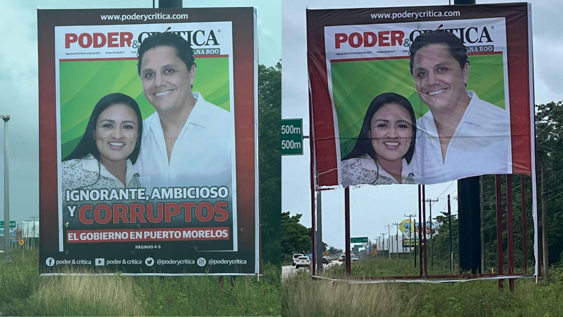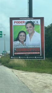 PODER Y CRÍTICA | REDACCIÓN | Las huestes corruptas del Partido Verde Ecologista de México (PVEM) que gobiernan Puerto Morelos, vandalizaron un espectacular de esta editorial donde se denunciaba la ignorancia de la alcaldesa Blanca Merari Tziu Muñoz y la ambición del corrupto Sindico municipal Carlo Fonseca León.