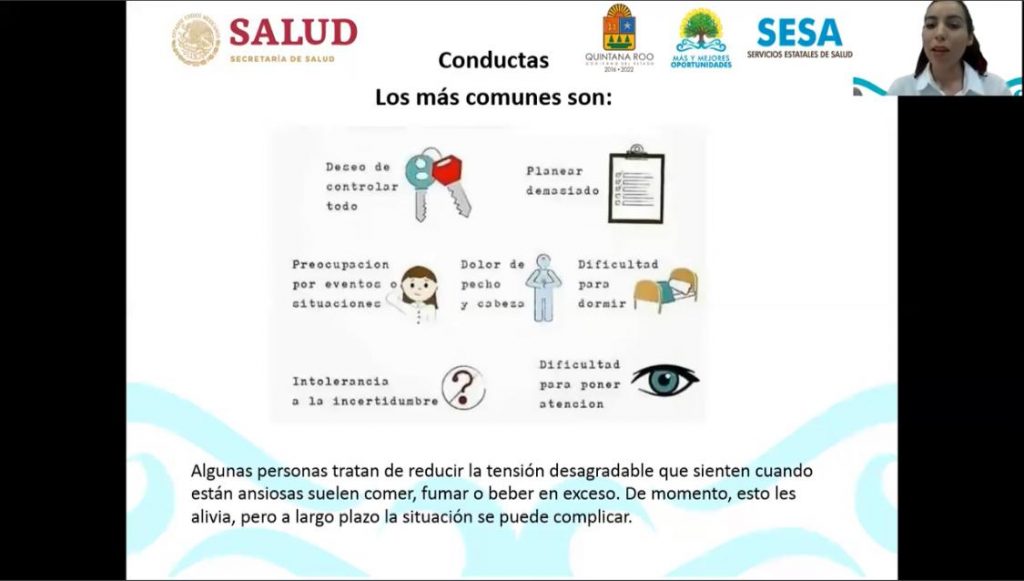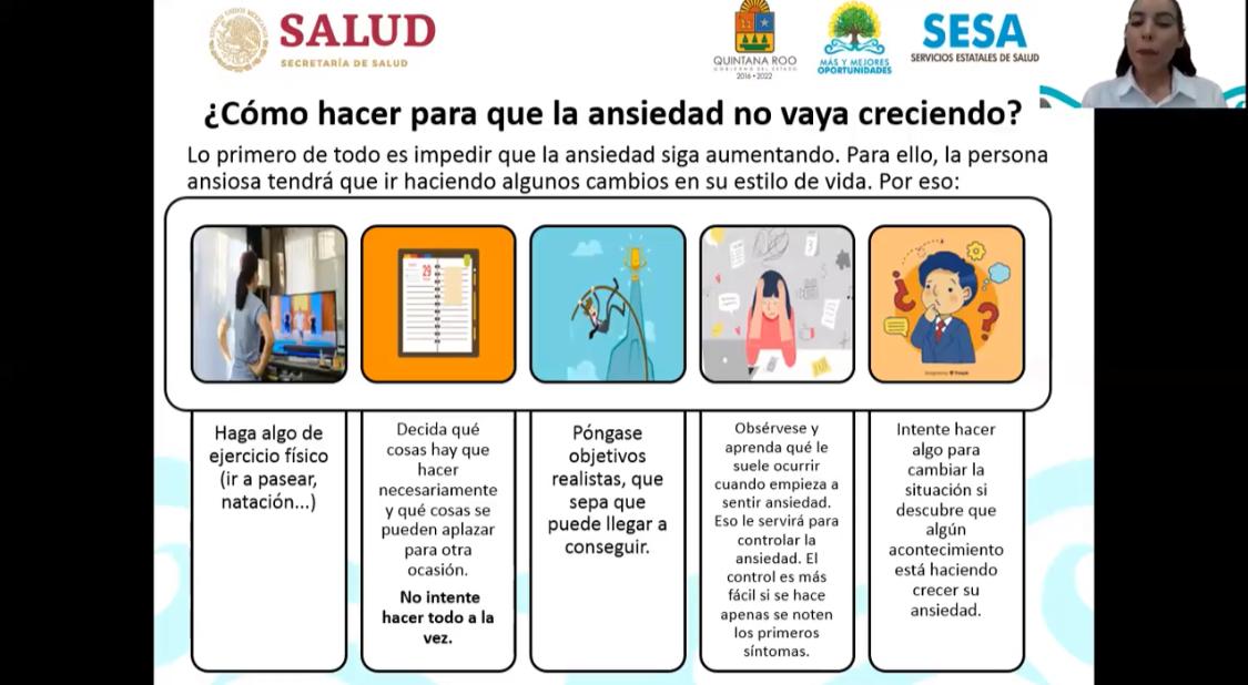El objetivo de la conferencia, impartida por la psicóloga Marissa Álvarez, del área de Salud Mental de la SESA, es capacitar a los jóvenes y brindarles herramientas para manejar el estrés y la ansiedad en estos tiempos de confinamiento y clases virtuales.