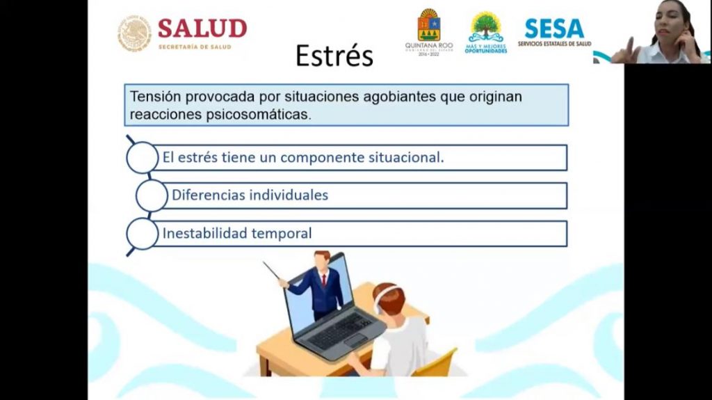 Chetumal, Q. Roo, Miércoles 17 de Marzo de 2021, poderycrítica.- Como parte de las acciones que conforman el Programa Integral de Seguridad Escolar de la Secretaría de Educación de Quintana Roo (SEQ) y con el apoyo de la Secretaría de Salud (SESA), se impartió la conferencia virtual “Manejo del estrés y ansiedad para jóvenes”.