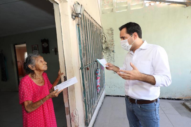 Cumpliendo todas las medidas preventivas, sobre todo para cuidar a este sector de la población, que es uno de los más vulnerables, Vila Dosal platicó con la mujer, quien por más de 30 años trabajó en el Sistema para el Desarrollo Integral de la Familia en Yucatán (DIF), la cual le agradeció estas acciones que disminuyen los riesgos al ya no tener que salir de sus casas para recibir sus ingresos, pues ahora, al contar con el plástico, alguno de sus familiares puede ir al módulo bancario para retirar el dinero.