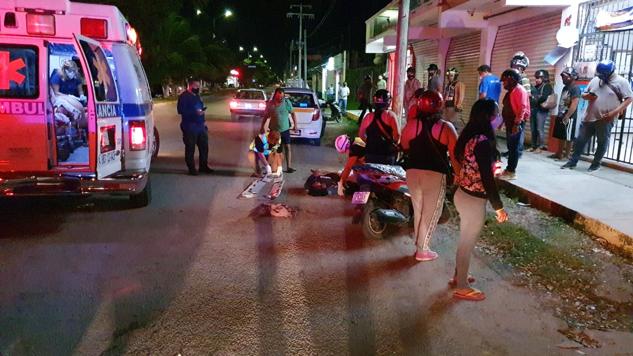 Chetumal, Q. Roo, Martes 22 de Diciembre de 2020, poderycrítica.- Una persona en evidente estado de ebriedad se voló el alto obligatorio y colisionó a dos personas que venían a bordo de una motocicleta; ambos se encuentran en estado grave de salud.