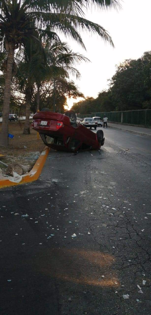 El incidente se registró cuando el conductor del Chevy Monza rojo con placas URL542G de Quintana Roo, al no respetar el dispositivo electrónico para el control de la vialidad (Semáforo) provoca ser colisionado por el chofer del Chevy azul con placas UUX239G de Quintana Roo, pero del impacto el Monza vuelca sobre su parte superior siendo esta su posición final.