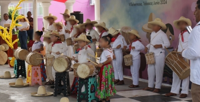 Durante la demostración de música por los niños de los diferentes CAI, la presidenta del organismo de asistencia social, reconoció el esfuerzo y entusiasmo de lo aprendido en el taller de tamborileros, proyecto innovador que –dijo- fue impulsado desde septiembre del 2022 por el Sistema DIF estatal, a fin de que la música folclórica tabasqueña se difunda y preserve en las nuevas generaciones.