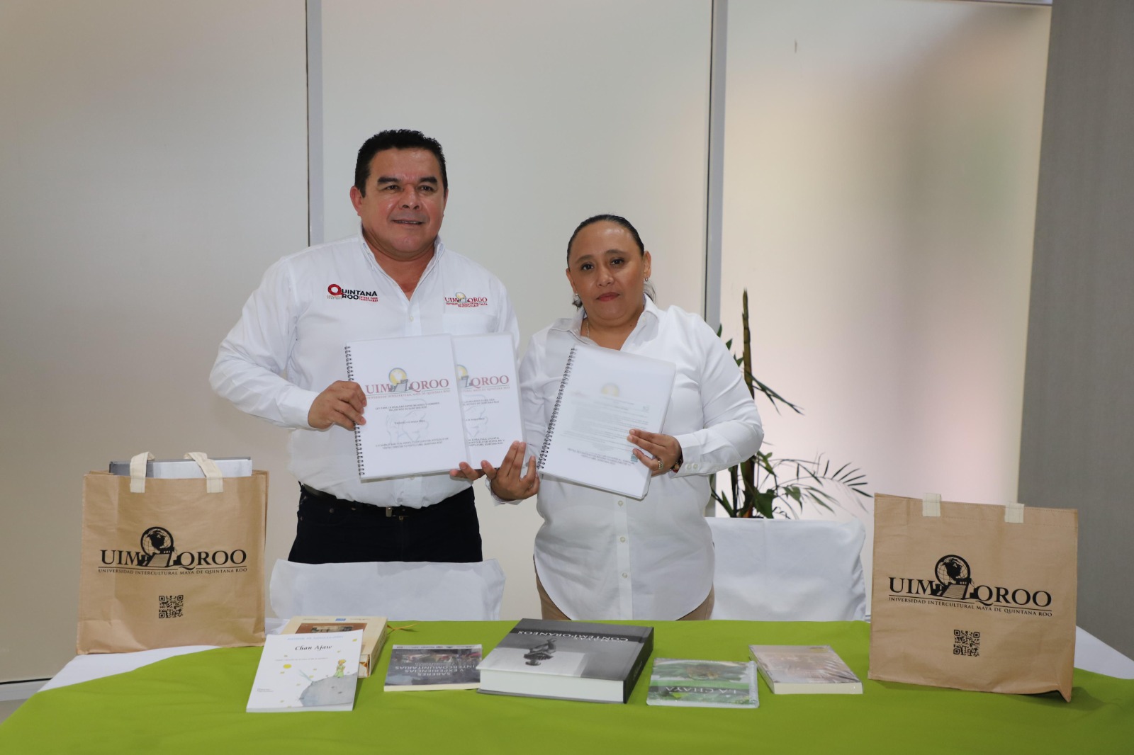 El acto protocolario de entrega de las Leyes traducidas a la lengua maya se realizó en el campus de la UIMQROO, con la participación del rector de la institución, William Hernando Briceño Guzmán quien a su vez le obsequió unos libros traducidos a la lengua Maya.