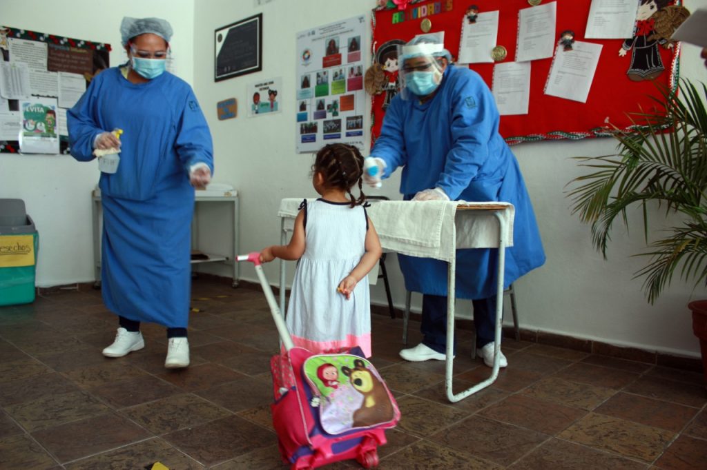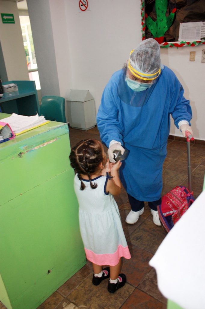 Márquez Aguirre reiteró que los trabajadores han recibido capacitación y apoyo para que retornen de manera segura a su labor, con el uso de Equipo de Protección Personal (EPP), que incluye careta, cubreboca de tres capas, guantes y una bata que portan al momento de recibir a niñas y niños.