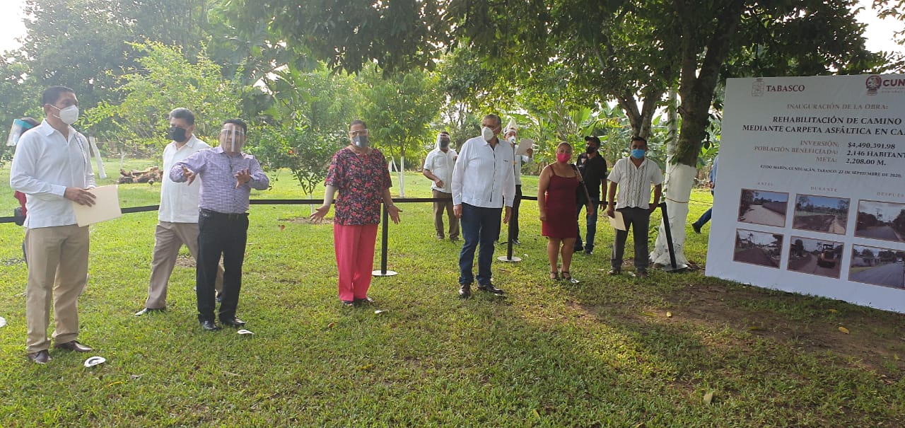 En su gira por Cunduacán, el gobernador inauguró la obra de rehabilitación de camino a base de mezcla asfáltica en frío y rehabilitación de camino con pavimento asfáltico mediante bacheo en el Ejido Libertad 3era. Sección Monte Grande, que tuvo una inversión 2 millones 912 mil 056 pesos, con una población beneficiada 5 mil 531 habitantes.